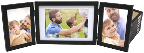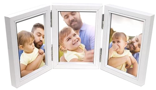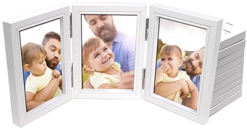 White Triple Multi Photo Frame 2-6x4 and 7x5'', Hinged Foldable 3 Picture Frames for Photoes 2-4x6''5 &5x7'', White Wood effect Multi College Picture Frame for Desktop,Family Frame