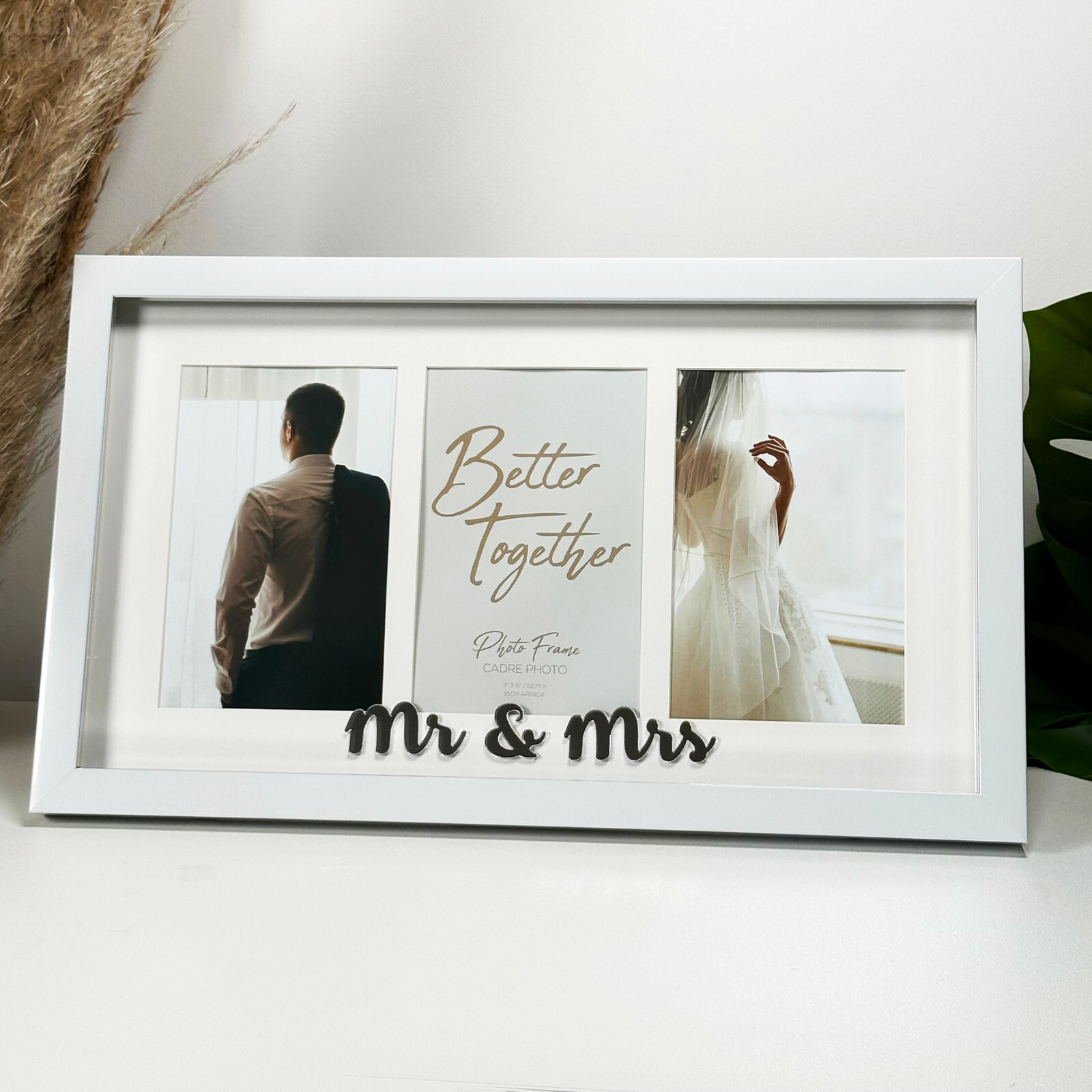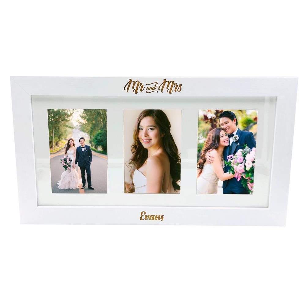 Personalised Mr and Mrs Wedding White Wooden Triple Photo 6 x 4 Frame C48-2