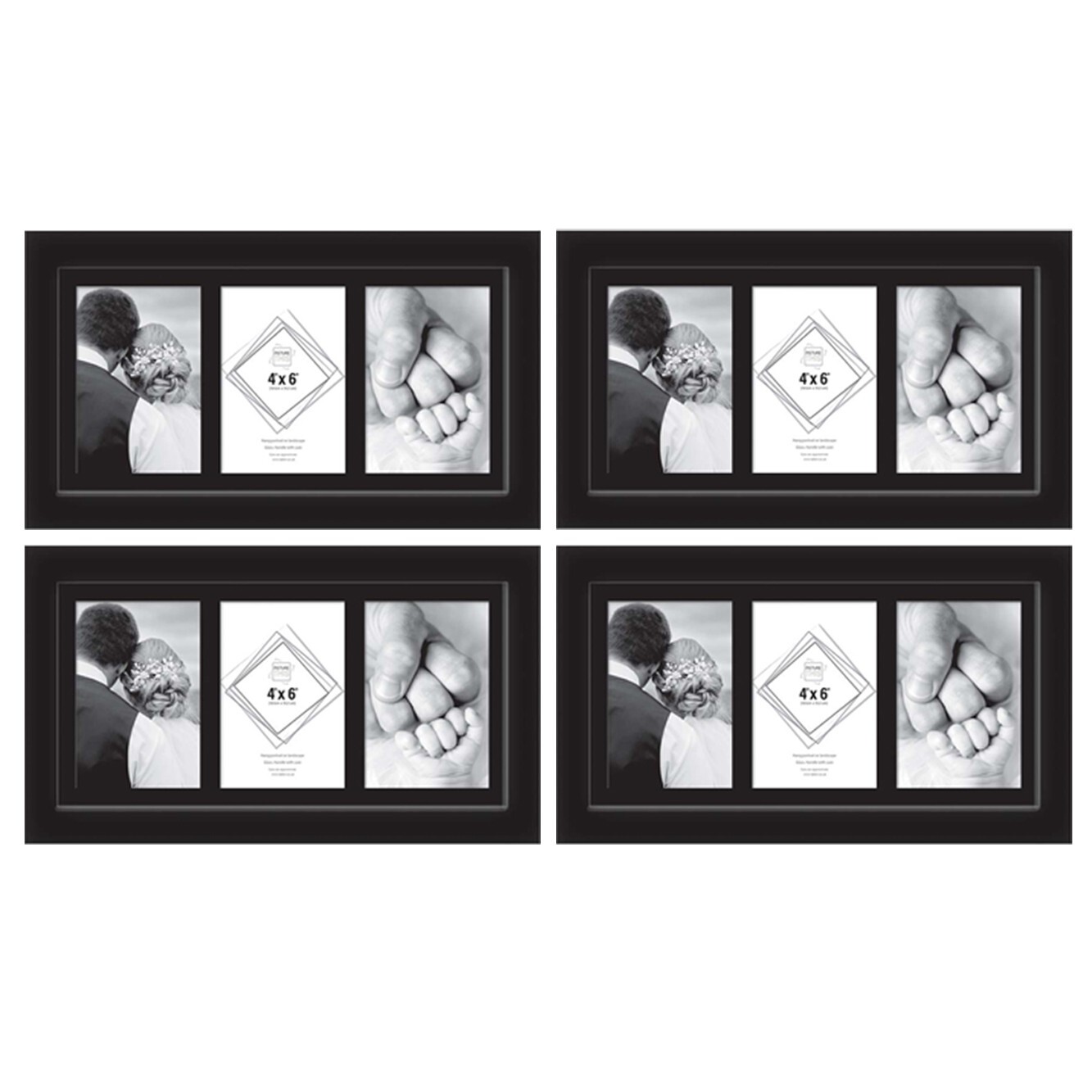 [Set of 4] Multi Aperture 4"x6" Black Photo Frame Glass Triple Photos Wall Mount