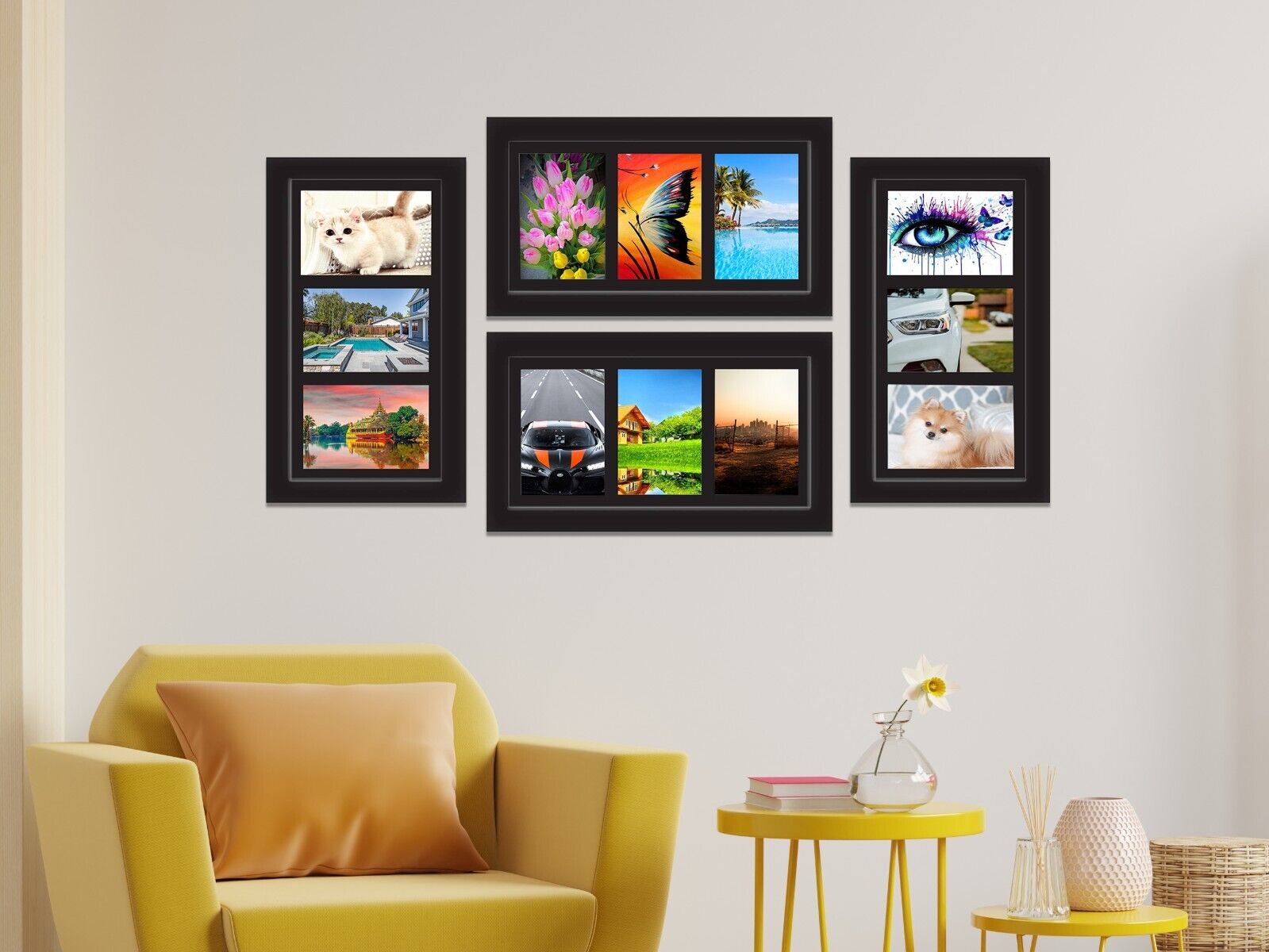 4"x 6" Black Photo Frame 3 Aperture Glass Front Portrait Triple Photos Pictures