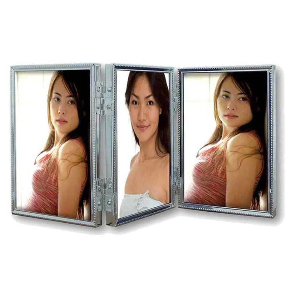 Shudehill 3 Way Travel Triple Photo Frame Satin Plain Silver 2" x 3"