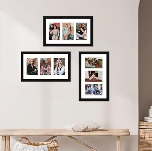 Triple Photo Picture Frame 6 x 4, Black, Pack of 3, Holds 3 Photographs, Picture Frame, 10 x 15 cm, 6x4 Picture Frames, Black 6x4 Photo Frames, 4x6 Photo Collage Gallery Display