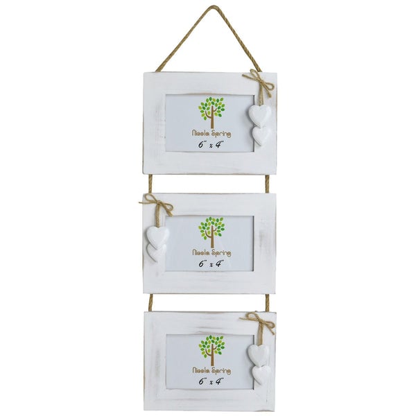 6" x 4" White Hanging Triple Photo Frame with Hearts - White