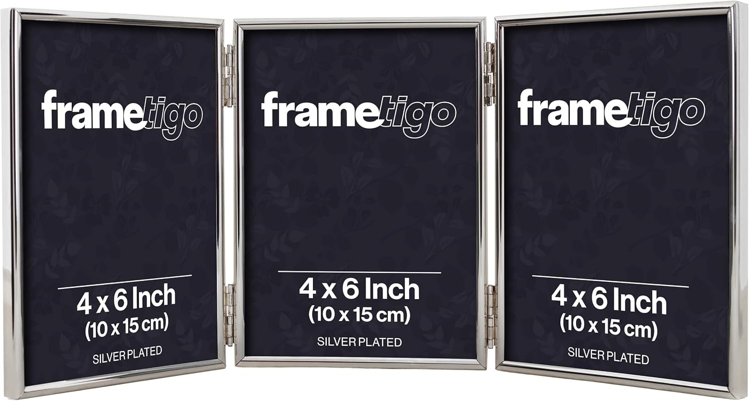 Silver Plated Thin Edge Triple Photo Frame, 4"x6" (10x15cm) Photo Size - Portra