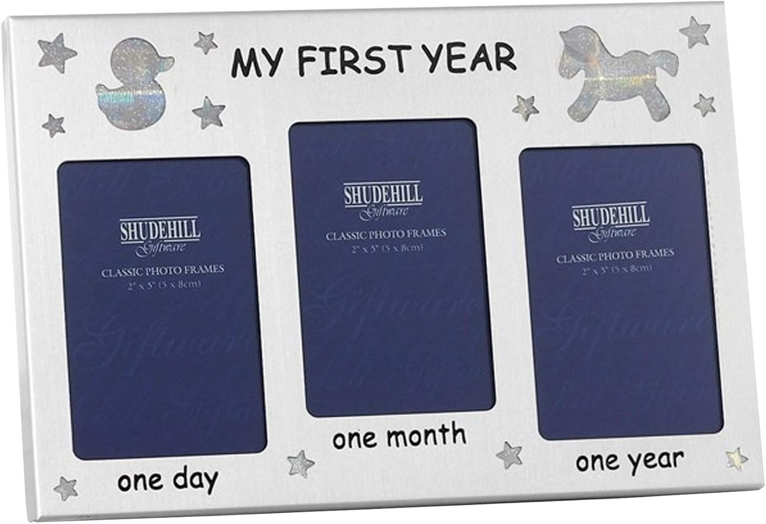 Silver Plated My First Year New Baby Triple Photo Frame - 1 Day / 1 Month / 1 Y