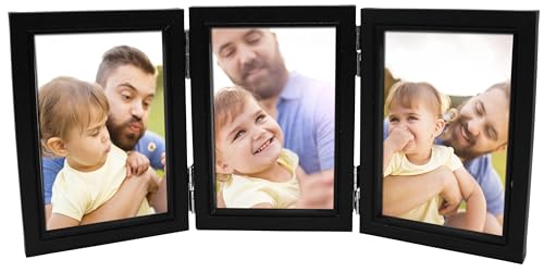 Triple Photo Picture Frame 6 x 4 and 7 x 5 Black, Holds 3 Photographs, Picture Frame, 10 x 15 cm, 6x4 Picture Frames, Black 6x4 Photo Frames, 4x6 Photo Collage Gallery Display