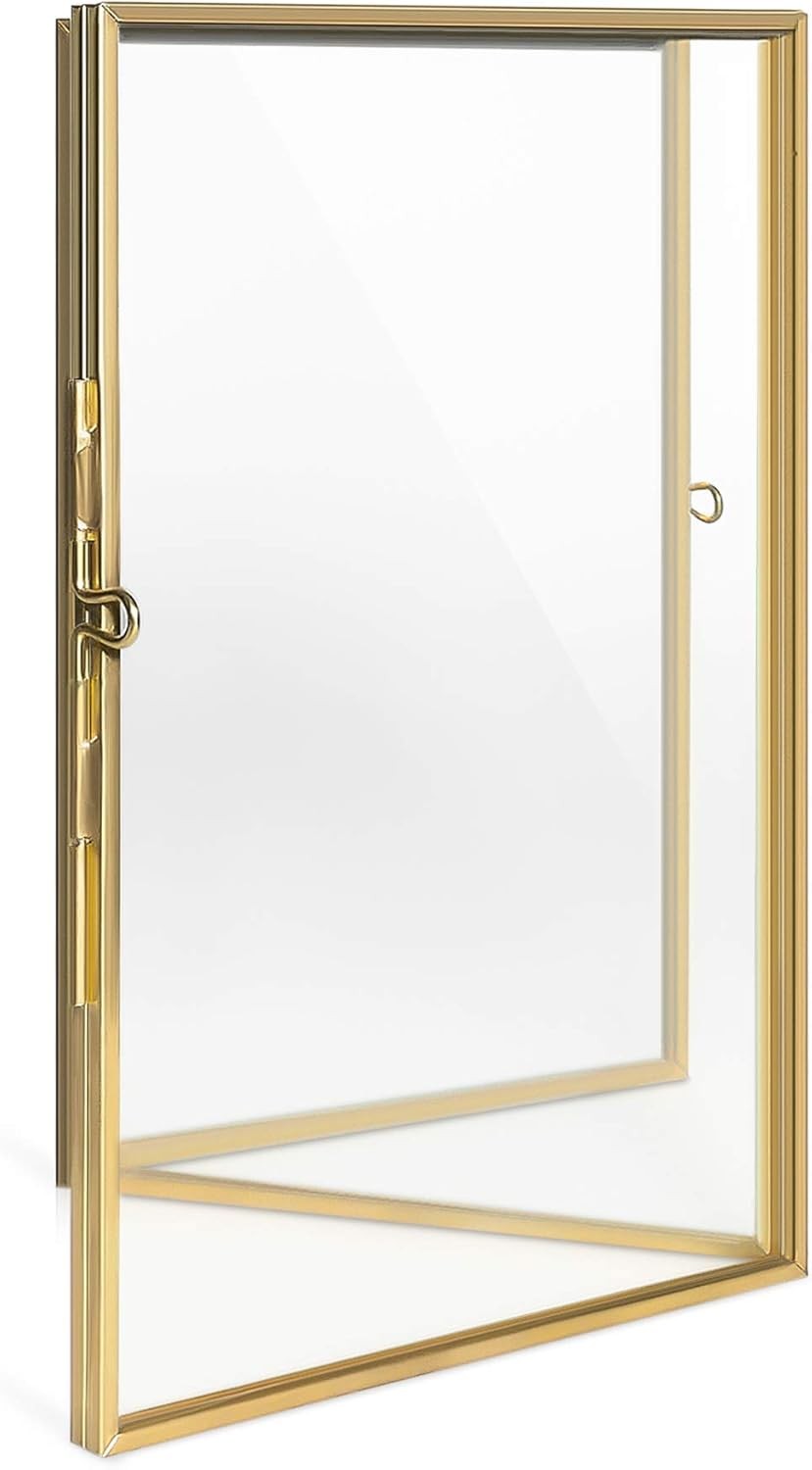 Navaris Folding Triple Photo Frame - Fits 15x10cm Photos Double-Sided Brass and Glass Picture for Multiple Portrait Pictures Size S, Gold