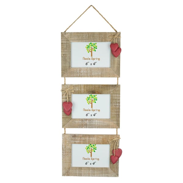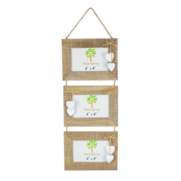 4" x 6" Wooden Hearts Hanging Triple Photo Frame