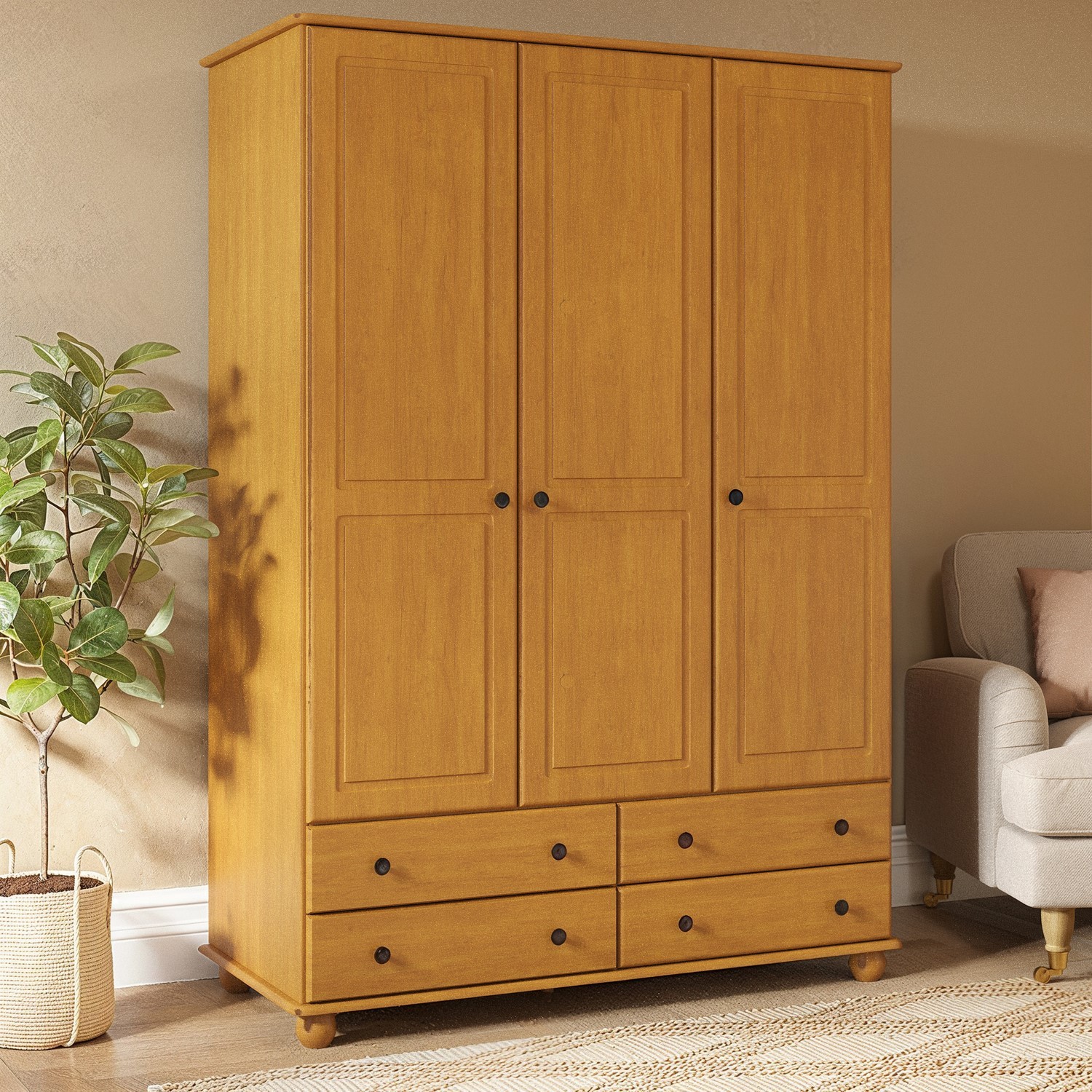 Triple wardrobe with drawers