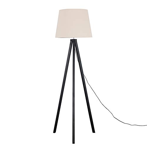 MiniSun | Modern Black Wood Tripod Design Floor Lamp with a Beige Tapered Shade | Floor Lamps & Torchieres, Home Décor & Improvement Essential | Includes Bulb [3000K Warm White]