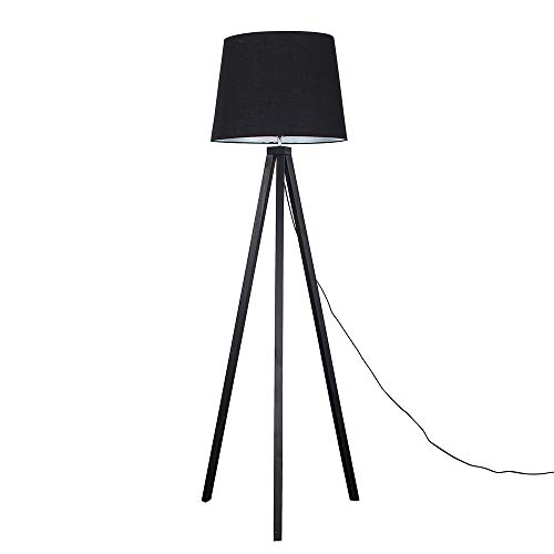 MiniSun | Modern Black Wood Tripod Design Floor Lamp with a Black Tapered Shade | Floor Lamps & Torchieres, Home Décor & Improvement Essential | Includes 6W LED Bulb [3000K Warm White]