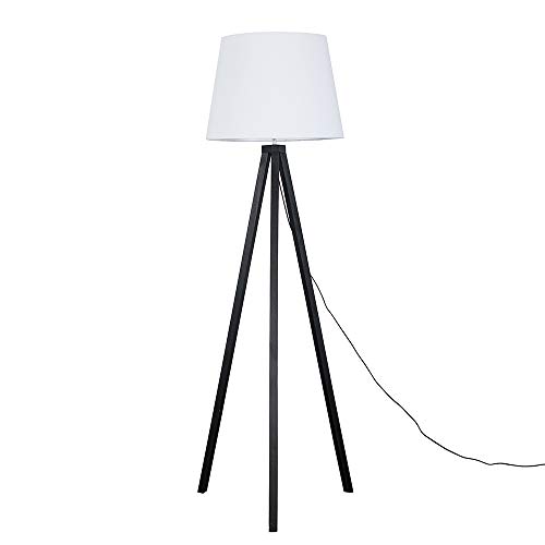 MiniSun | Modern Black Wood Tripod Design Floor Lamp with a White Tapered Shade | Floor Lamps & Torchieres, Home Décor & Improvement Essential | Includes Bulb [3000K Warm White]