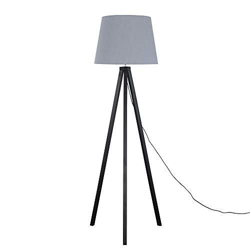 MiniSun | Modern Black Wood Tripod Design Floor Lamp with a Grey Tapered Shade | Floor Lamps & Torchieres, Home Décor & Improvement Essential | Includes Bulb [3000K Warm White]