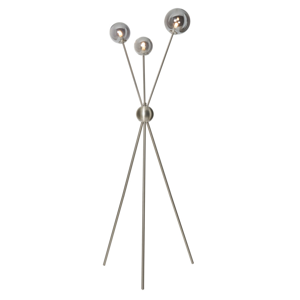 Litecraft Tripod Floor Lamp 3 Light With Smoke Glass Ball Shades - Satin Nickel