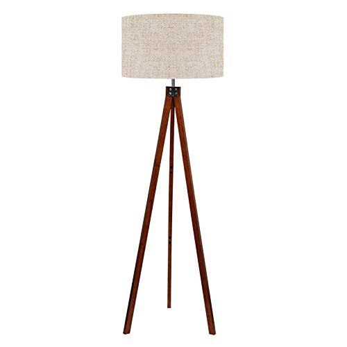 LEPOWER Wood Tripod Floor Lamp, Mid Century Standing Lamp, Modern Design Studying Light for Living Room, Bedroom, Study Room and Office, Flaxen Lamp Shade Walnut Tripod