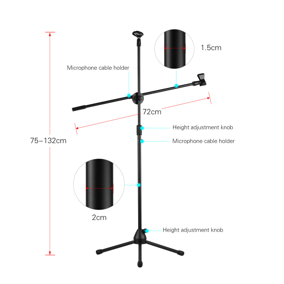 Adjustable Microphone Tripod Stand Boom Floor Light Weight Black