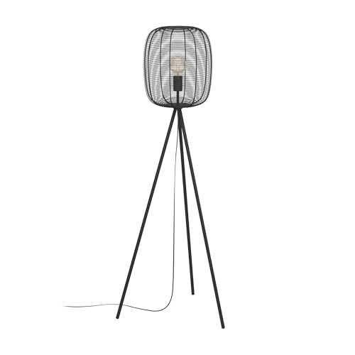 Eglo Tripod Floor lamp Rinroe, Three-Legged floorlamp for Living Room, Industrial Design Standing Light, Black Metal, E27 Socket, 140.5 cm