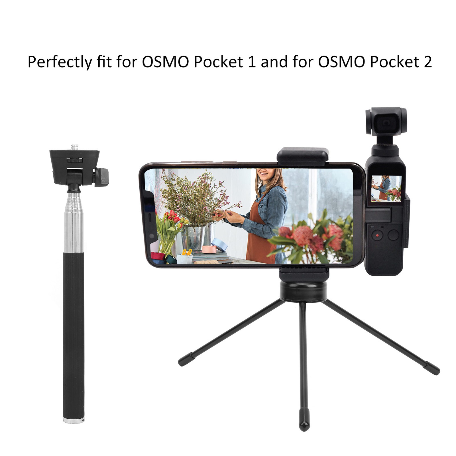 Telesin Selfie Stick Telescopic Link Mini Tripod Mobile Phone Clip For Sjc AM