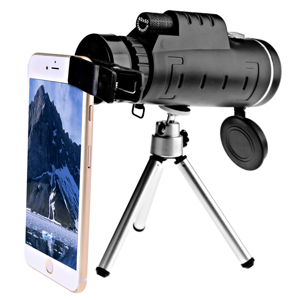 40X60 Optical Monocular Telescope Lens + Clip + Tripod For Camera Mobile Phone