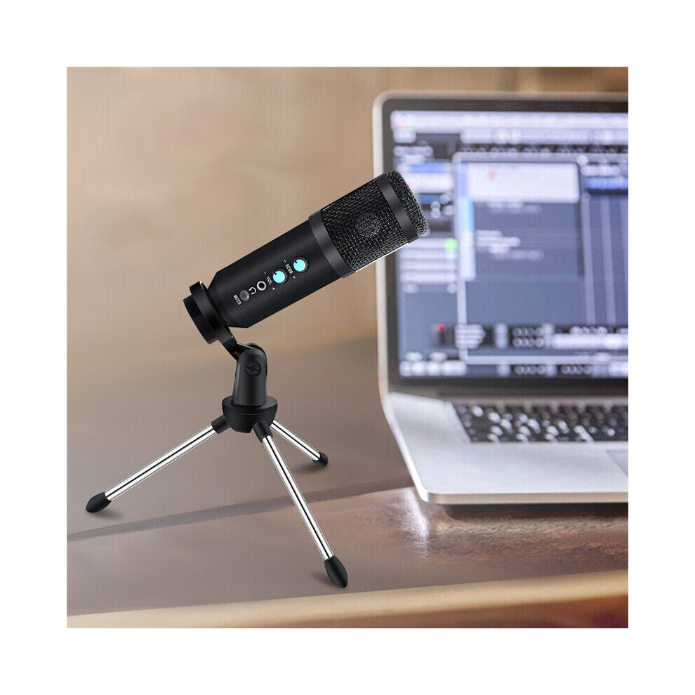 (Black) USB Condenser microphone HIFI Active Noise Reduction Reverberation Adjustable Wired with Tripod for Computer Mobile Phone Live Recording