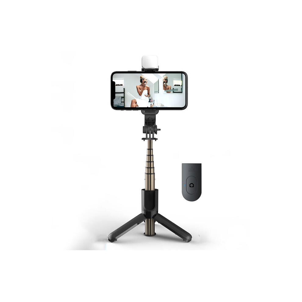 (a-black) Selfie Stick Tripod For Smartphone Phone Holder Q10S Fill Light Selfie Stick Lightweight Compact Wireless Phone Holder