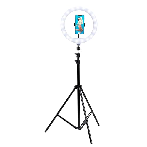 10 inch Ring Light with Tripod Stand & Phone Holder, Selfie Ringlight with Remote for Phone, 70" Tall Circle Light, LED Ring Lamp for Makeup, Video Recording, Conferencing, TikTok, Twitch