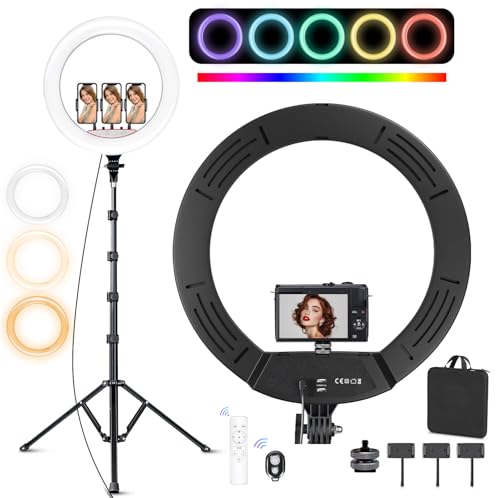 Ekasoco 18 inch LED Ring Light with Tripod Stand & 3 Phone Holder, 26 RGB Mode 2700K-7000K Dimmable Selfie Ring Light for Live Streaming, Makeup, Camera, Selfie,YouTube
