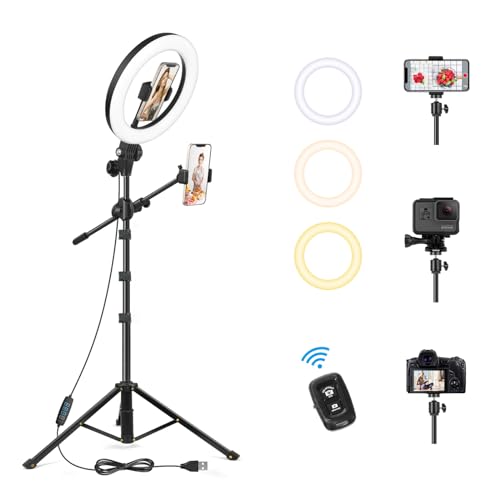 10" Ring Light with Tall Tripod Stand & Phone Holder for YouTube Video, Dimmable Led Ring Light with Remote for Camera, Video, Makeup, Selfie Photography Compatible with Smartphone