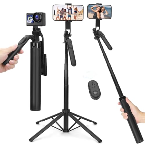 Vimose Newest 62" Phone Tripod, Tripod for iPhone & Selfie Stick Tripod with Remote, Extendable Phone Tripod Stand & Travel Tripod, Solidest Cell Phone Tripod Compatible with iPhone/Android