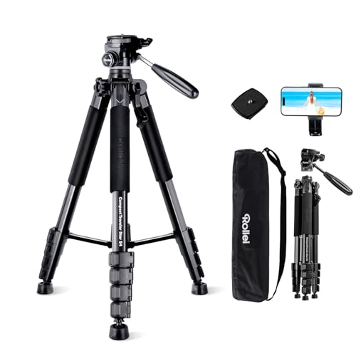 Rollei Compact Traveler Star S4 Tripod, 188cm Camera Stand Aluminium Lightweight Video Tripod with Detachable 3-Way Head for DSLR Phone & Camera Tripod with Phone Holder Portable, Camera-Tripod-Stand