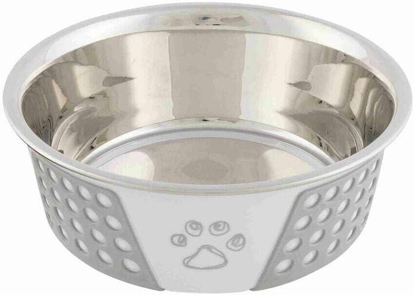 Trixie Stainless Steel Bowl with Silicone, Non-Slip, Portable, 1 Cup, White, Me