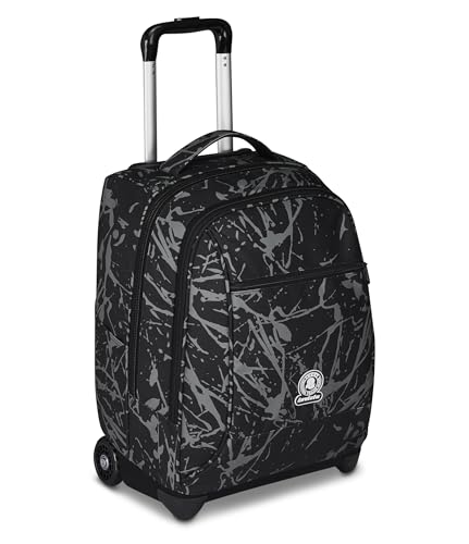 Seven AS Roma Jack 3 Wheels School Trolley Black Backpack with Removable Trolley 33 Litres for Elementary and Middle School, Children, Football, Black, Taglia unica, Casual