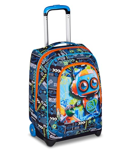 SJ GANG STYLE JAM GANG School Trolley Fixed, Blue, 2 in 1, Double Use, Trolley and Backpack, Elementary School Backpack, Child, blue, Taglia unica, modern