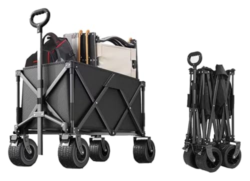 MEMEM Folding Camping TrolleyShopping Trolley,Trolley Camping,All Terrain Utility Pull Camping Wagon,Folding Camping Wagon,Wagon Beach Trailer 4 Wheels,for Beach Camping Black(Black)