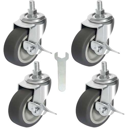AAGUT 3" Swivel Caster Wheels, 4 Pack 5/16"-18 x 1" Threaded Stem Mount Dust Cover Rubber Heavy Duty Casters Replacement for Carts, Furniture, Dolly,Trolley, Workbench,Each Bearing 150Lbs