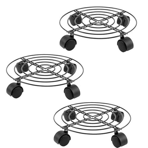 JF HOME BLISS 3 Pack Heavy Duty Plant Caddy with Wheels, 27cm Round Metal Potted Trolley - Movable Plant Dolly for Indoor & Outdoor Use