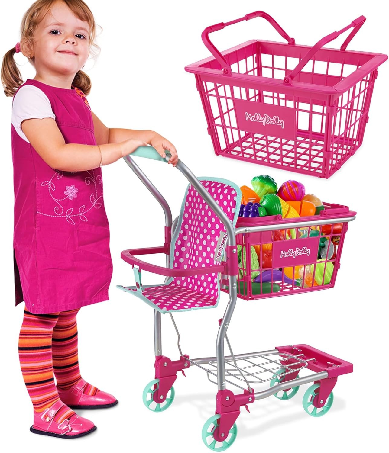 Molly Dolly Kids 2 in 1 Supermarket Shopping Trolley & Removable Basket Toy