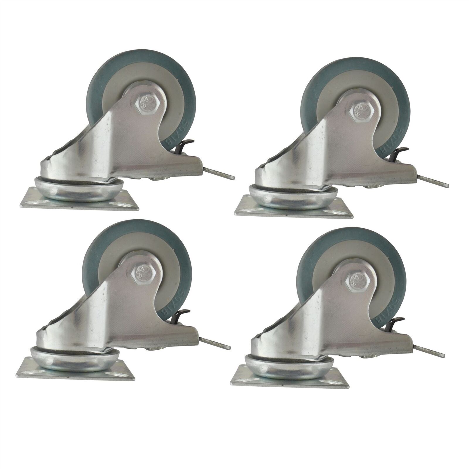 2" (50mm) Braked Castors Swivel 4PK Rubber 50kg Trolley Dolly Wheel Caster