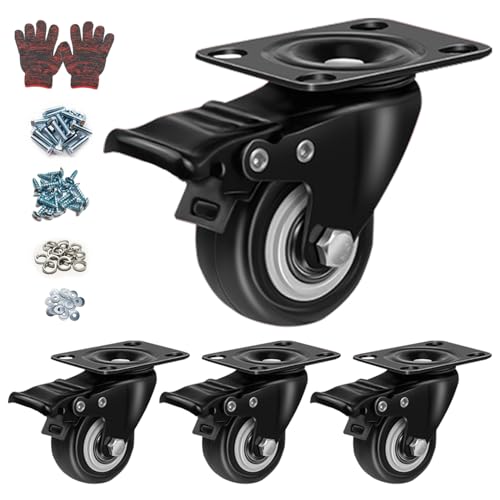 CoralBloom Heavy Duty Castor Wheels Set of 4 with Brakes - 360° Rotating Furniture Castors for Trolley/Dolly/Bed - Durable Polyurethane Small Casters Wheels