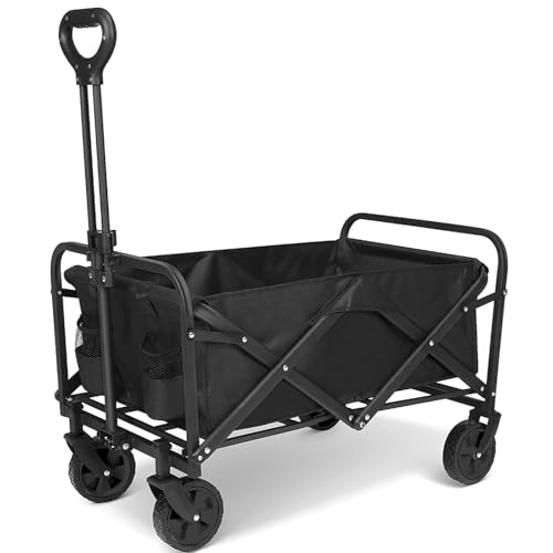 MEMEM Folding Camping Trolley Trolley Camping,4 Wheel Festival Trolley,Folding Cart Wagon,Shopping Trolley,Garden Trolley,Pull for Shopping Camping,Perfect for Beach, Camping, and Garden(Black,5 in)