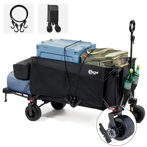 Sunula Festival Trolley with Brake - 250L Capacity & 330LB, Heavy Duty Folding Camping Wagon, All-Terrain Wheels, Patented 4-Way Folding, One-Click Adjustable Handle, Pull-Along Beach Cart - Black