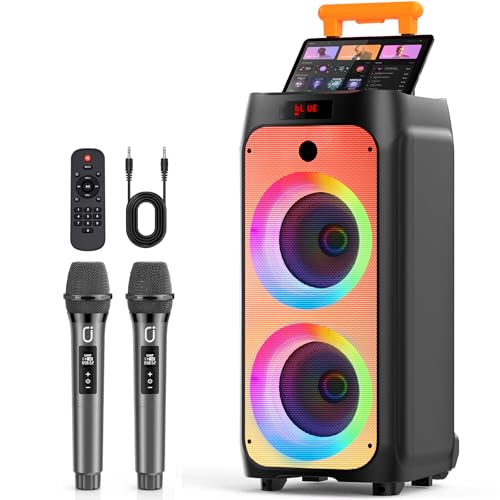 HWWR Karaoke Machine with 2 Wireless Microphones, Big Bluetooth Karaoke Speaker with 500W Peak Power for Adults, PA System with Rolling Wheels and Trolley, Perfect for Outdoor, Home Party, Gatherings