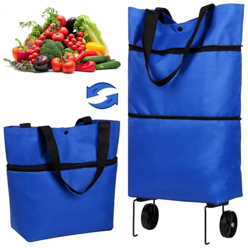 Folding Shopping Trolley,With Wheels,Cart Oxford Cloth Shopping Bags,Reusable,Shopping Cart,For Supermarket,Collapsible Shopping Trolley,Travelling (Blue)