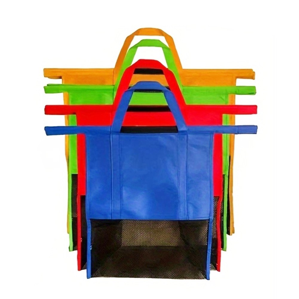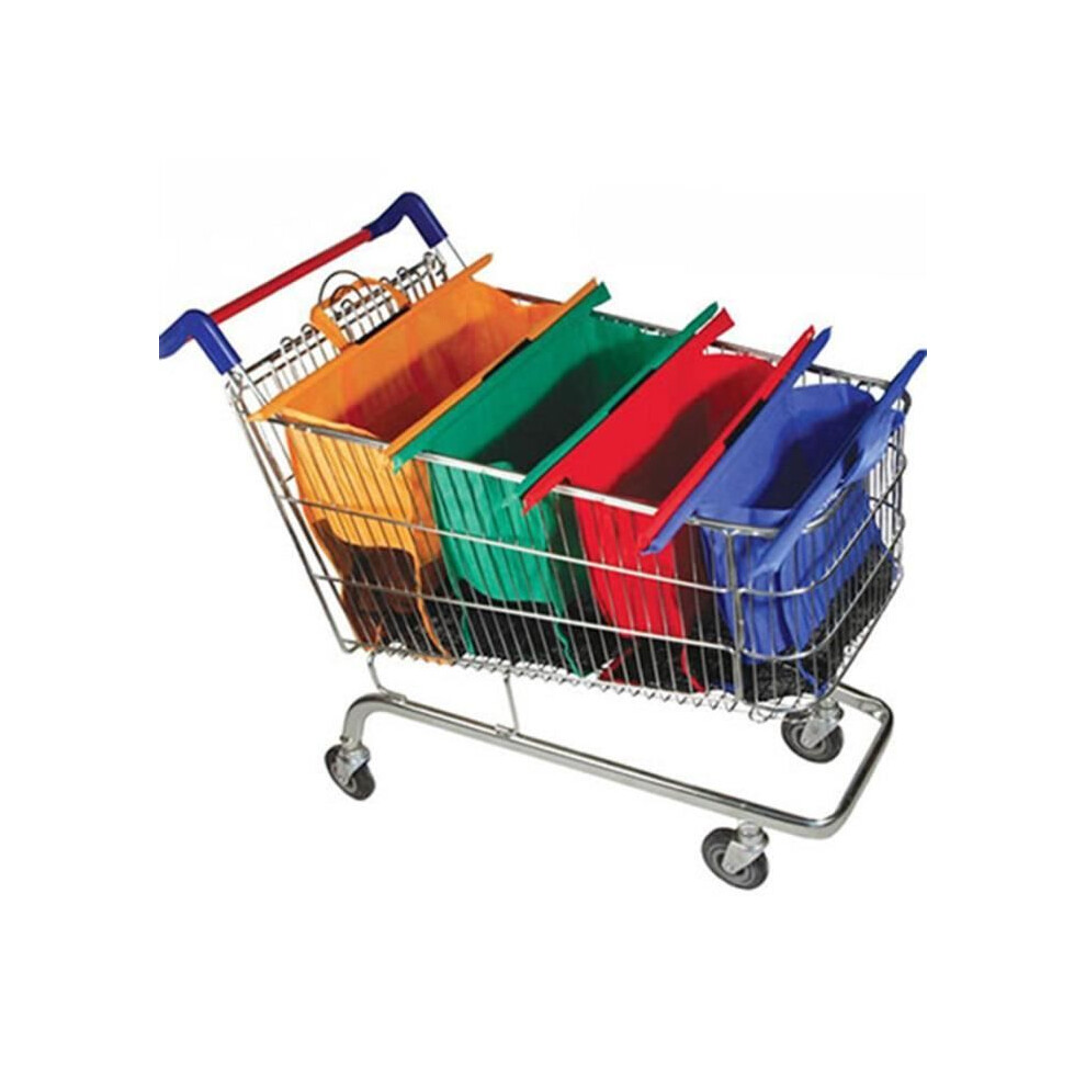 (Default) 4-Piece Reusable Trolley Bags Set - Folding Supermarket Shopping Trolley Bags in Orange Green Red and Blue for Women