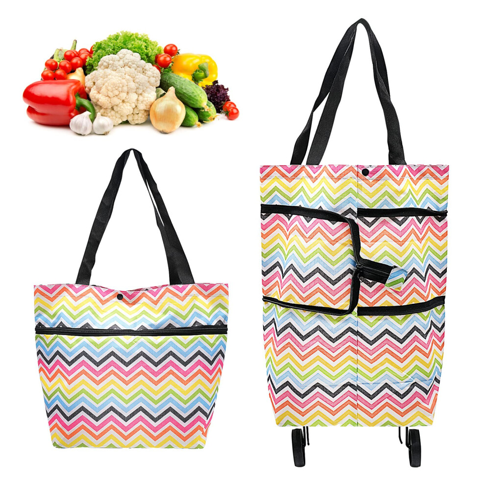 Foldable Trolley Bags with Wheels, 2 in 1 Rainbow Shopping Trolley, Durable Shopping Bag for Home and Supermarket Use