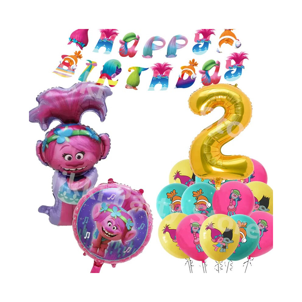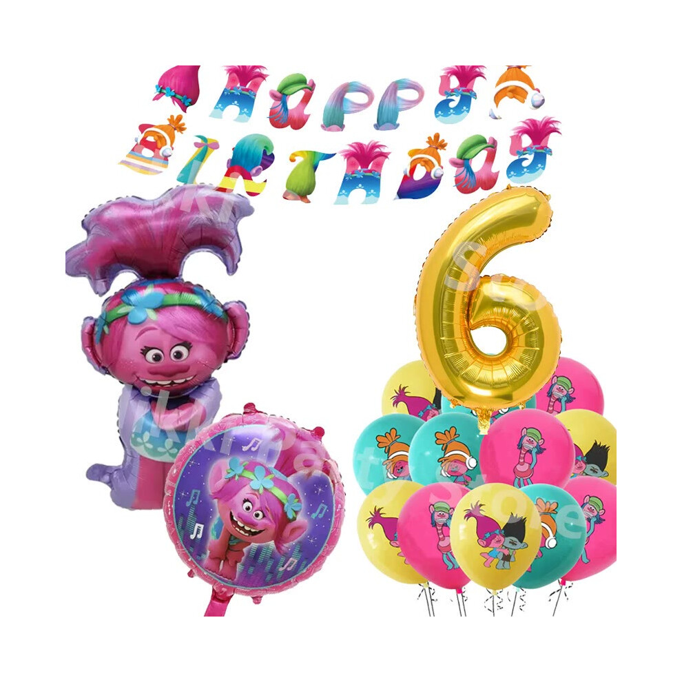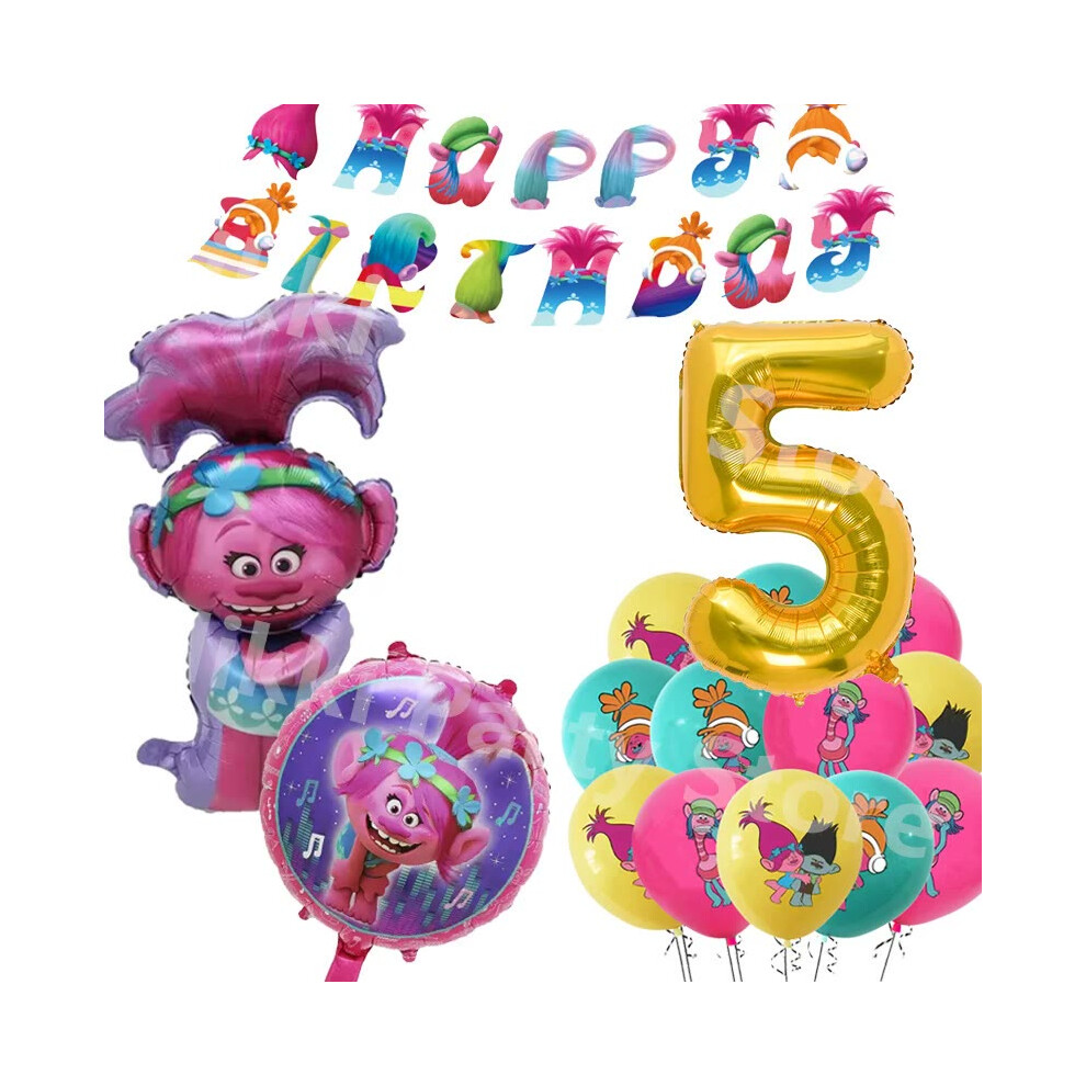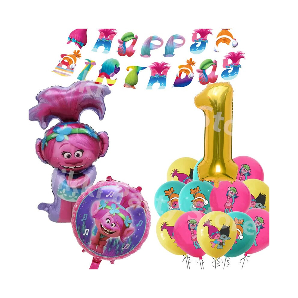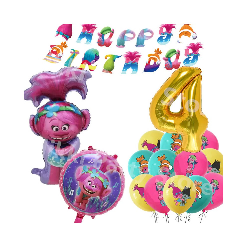 (Balloons-18inch) New Trolls Birthday Party Decorations Troll Dolls Balloons Disposable Party Favors Tableware Tablecloth Plates Cups Baby Shower