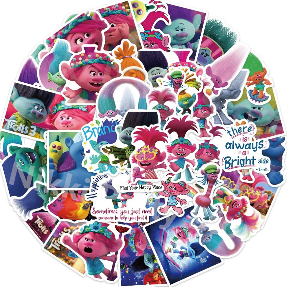 (Sticker-50pcs) New Trolls Birthday Party Decorations Troll Dolls Balloons Disposable Party Favors Tableware Tablecloth Plates Cups Baby Shower