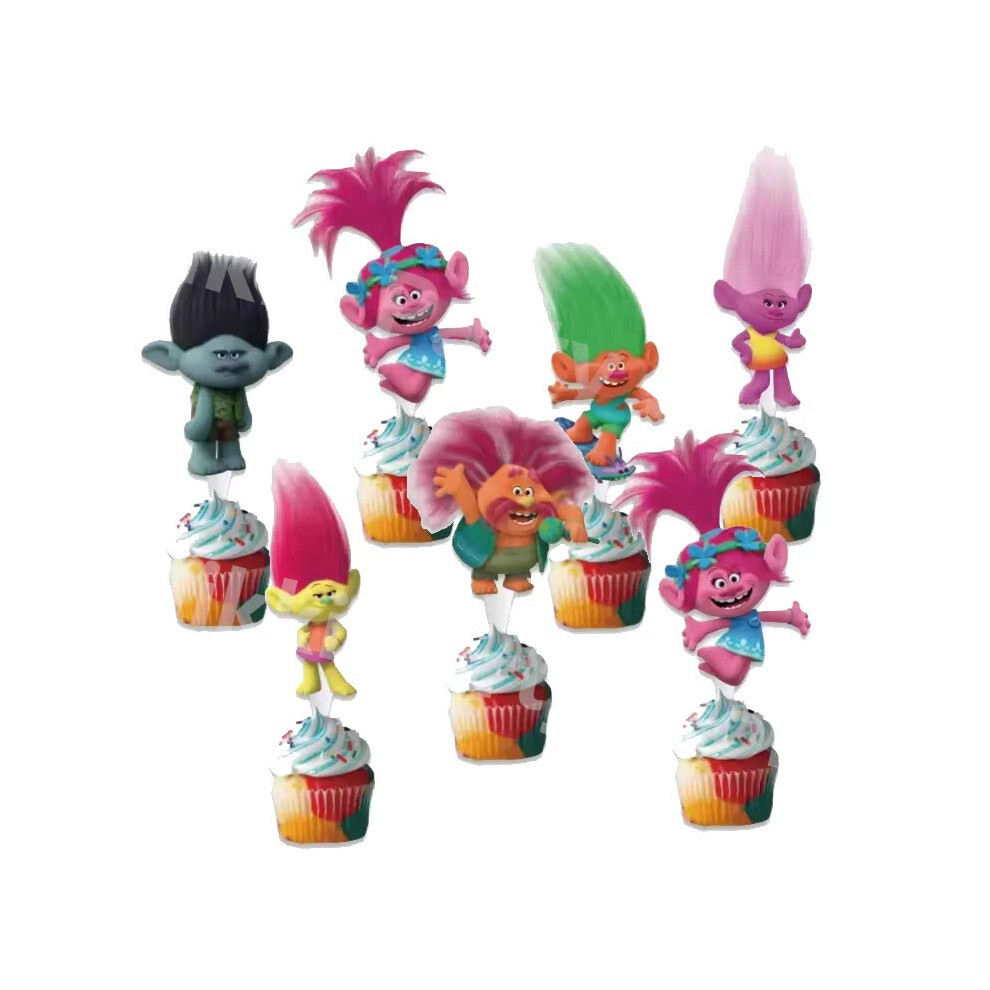 (Cake toopers-24pcs) New Trolls Birthday Party Decorations Troll Dolls Balloons Disposable Party Favors Tableware Tablecloth Plates Cups Baby Shower