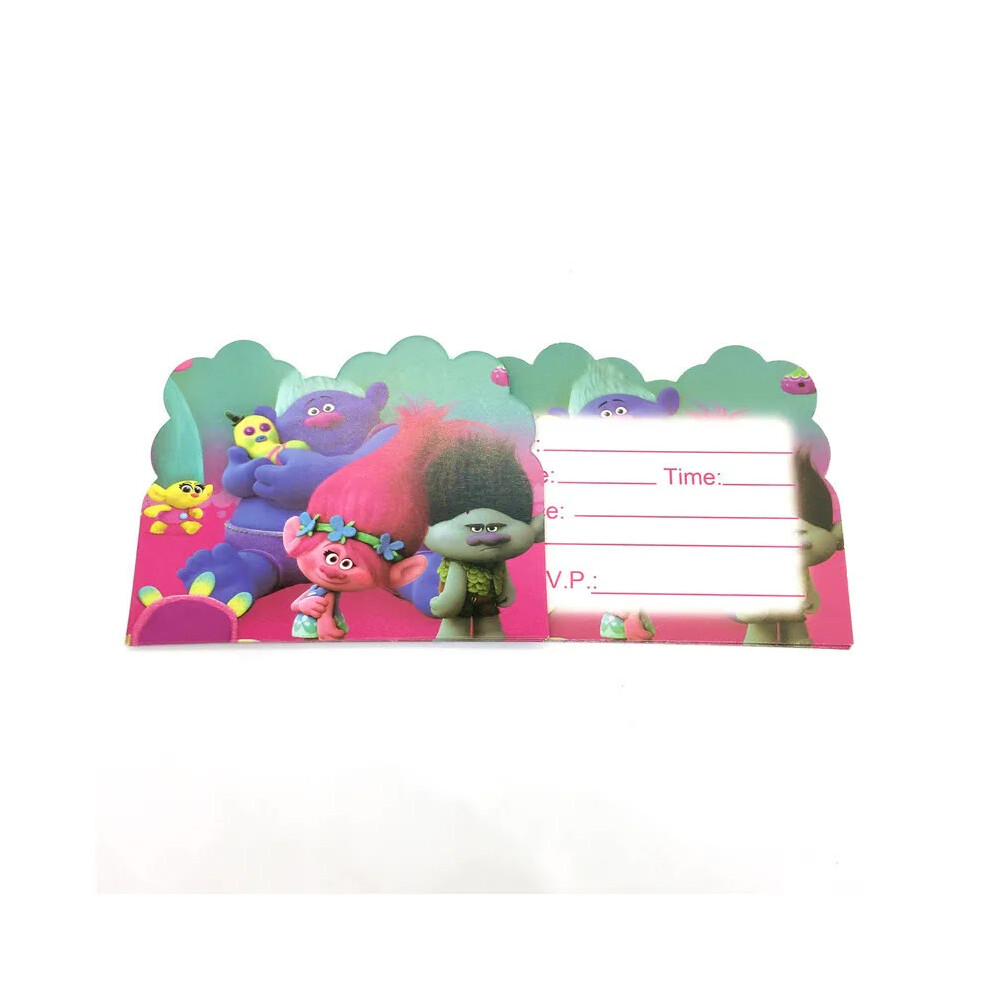 (Gift Cards-10pcs) New Trolls Birthday Party Decorations Troll Dolls Balloons Disposable Party Favors Tableware Tablecloth Plates Cups Baby Shower