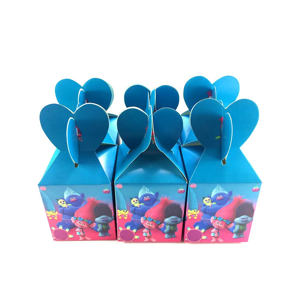 (Candy box-6pcs) New Trolls Birthday Party Decorations Troll Dolls Balloons Disposable Party Favors Tableware Tablecloth Plates Cups Baby Shower